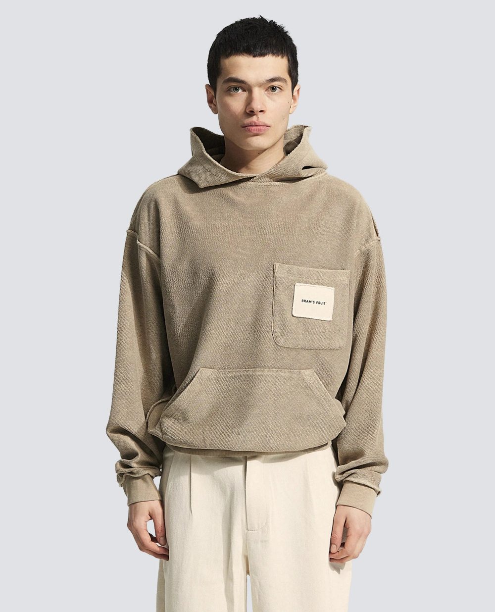 Ce sweat à capuche avec poche poitrine se distingue par une coupe décontractée, idéale pour un confort au quotidien. Il est doté d’une poche poitrine agrémentée d’une étiquette en toile vieillie, qui renforce son caractère authentique. Ses détails volontairement usés apportent une touche vintage subtile. Confectionné en coton premium 600 g/m² à l’envers, il offre une matière épaisse, douce et résistante.