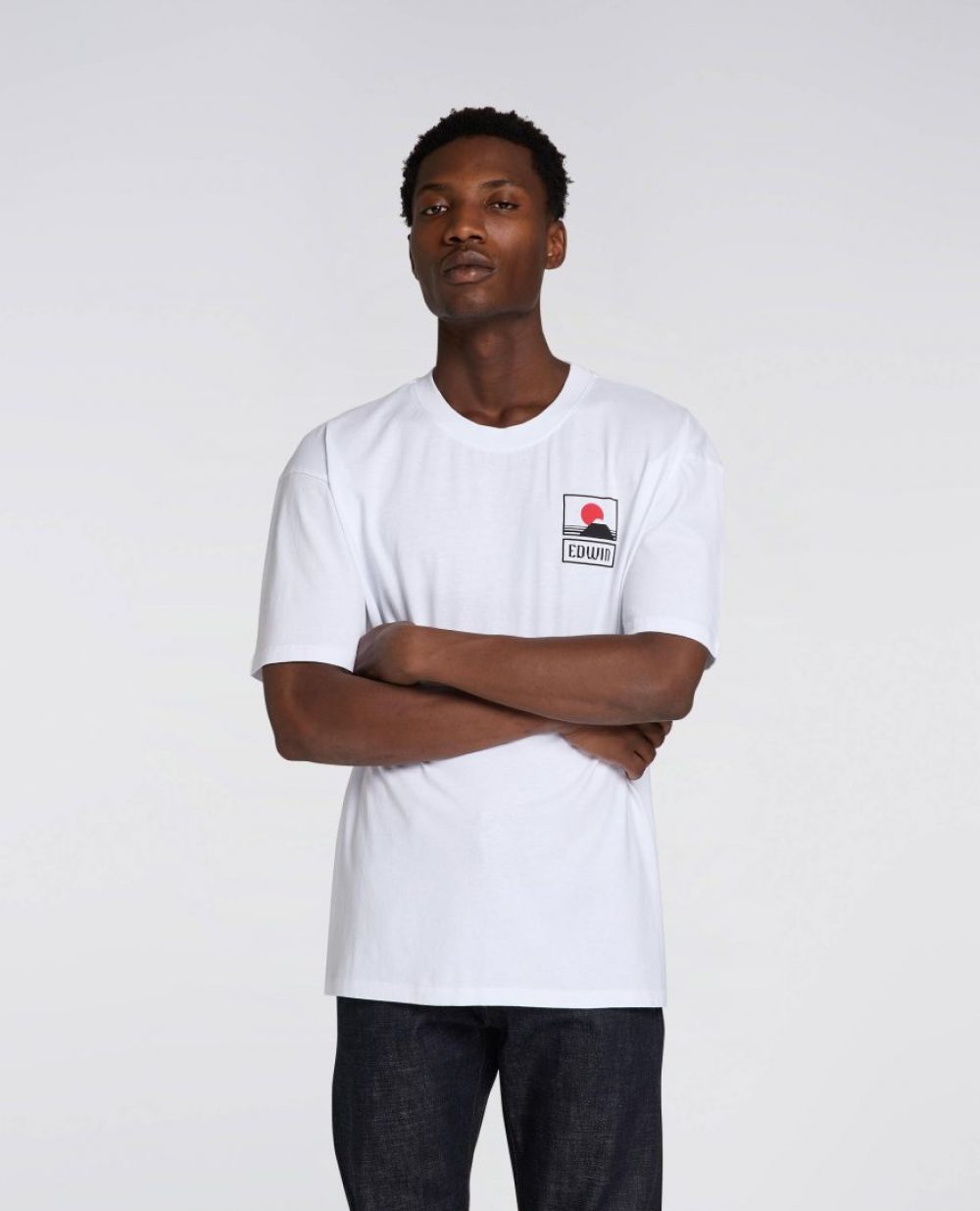 Le Sunset On Mt Fuji T-Shirt d’EDWIN met à l’honneur une scène graphique minimaliste représentant un coucher de soleil sur le Mont Fuji, imprimée sur la poitrine. Avec sa coupe oversize et sa matière douce, il allie confort et esthétisme japonais.