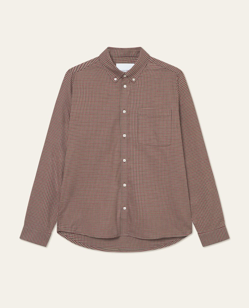 La Konrad est une chemise en flanelle brossée qui allie robustesse et douceur. Présentée dans une coupe regular, elle se distingue par son motif à mini carreaux subtil et ses finitions classiques. Les boutons ton sur ton, le col boutonné et les poignets ajustables soulignent son style intemporel, tandis que l’ourlet incurvé et le pli d’aisance dans le dos offrent confort et liberté de mouvement.