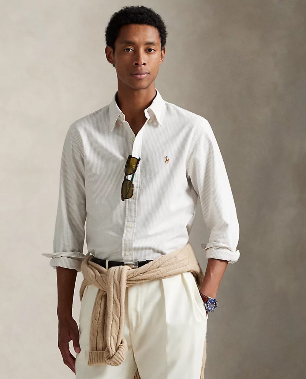 Parmi les premières créations de Ralph Lauren, la chemise Oxford s’est imposée comme un essentiel du style Polo. Fidèle à cet héritage, cette version rayée est brodée de notre poney distinctif en version multicolore, signature emblématique de la maison. Une réinterprétation raffinée d’un classique intemporel.