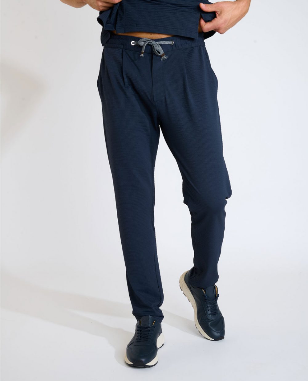 Le pantalon bleu marine THOMAS TRIESTE combine confort et élégance grâce à son tissu technique. Sa coupe garantit une silhouette moderne et intemporelle, parfaite pour un look soigné et polyvalent au quotidien.