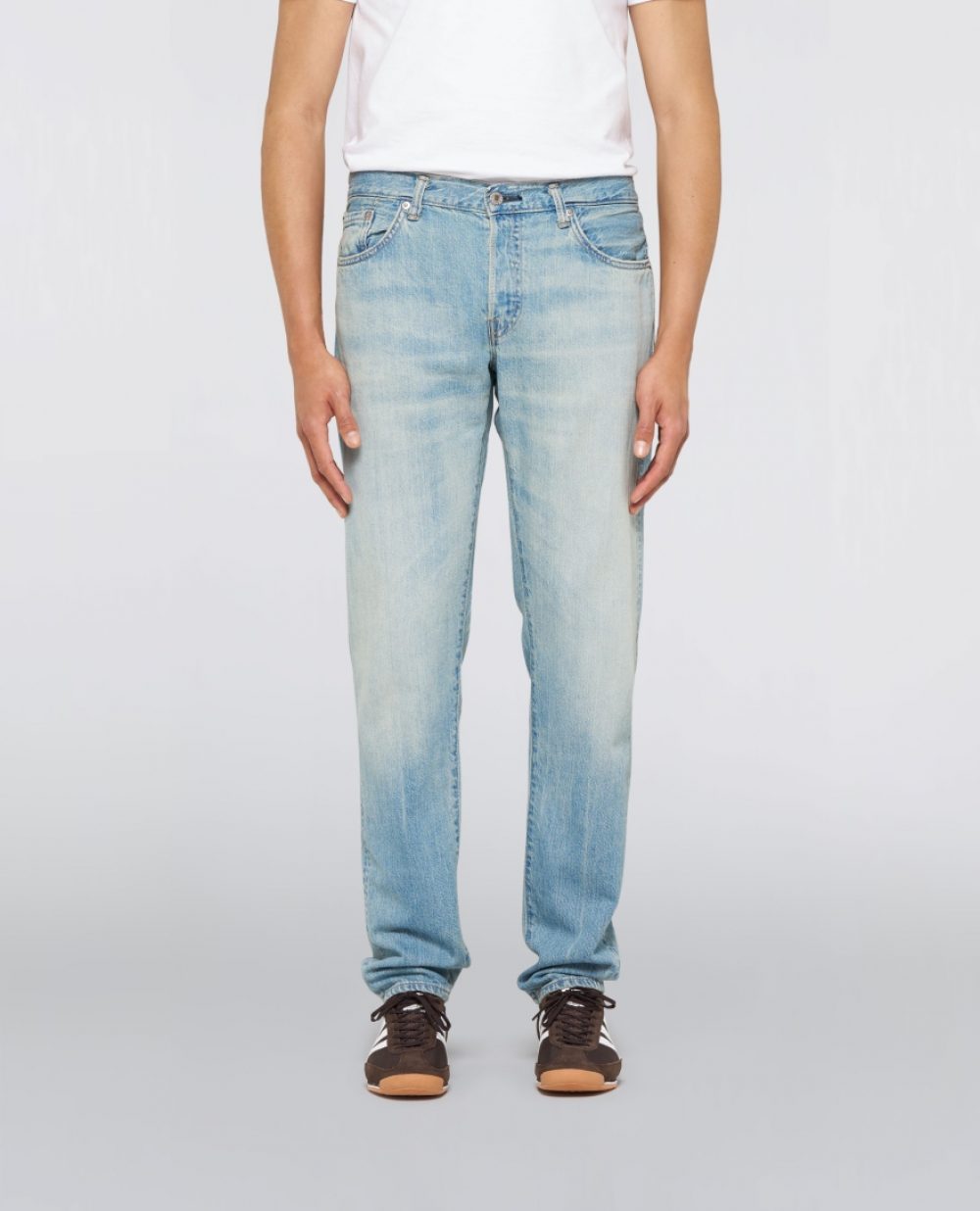 Doté d’une coupe fuselée classique et d’une taille mi-haute, il dispose de cinq poches ainsi que d’une braguette boutonnée. Un patch en papier 100 % pulpe vient compléter le design à l’arrière.
