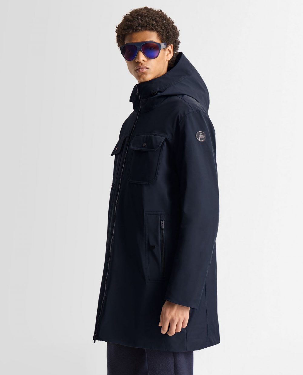 Le manteau Orno, confectionné dans une toile ultra mate, stretch et déperlante, s’impose comme une pièce maîtresse du vestiaire masculin. Ses coutures soudées et ses multiples fonctionnalités en font un allié idéal, que ce soit pour affronter la fraîcheur urbaine ou les escapades en altitude.