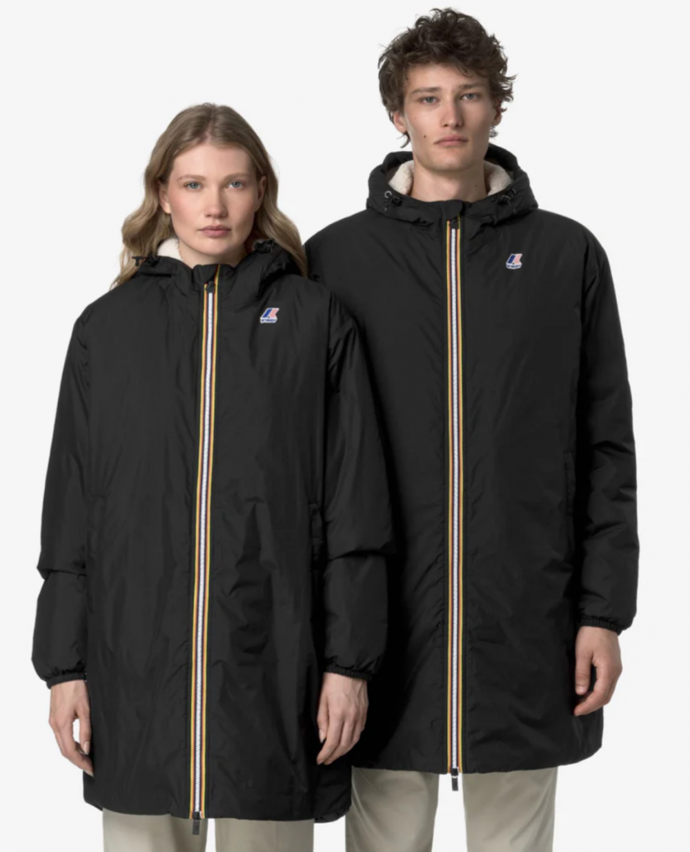 Le trench-coat Eiffel est conçu pour les débuts de l’hiver, combinant protection technique et détails graphiques emblématiques, comme le ruban rayé multicolore sur la fermeture éclair.