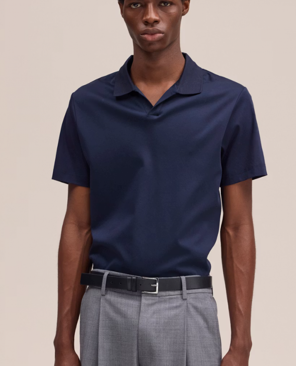 Ce polo à col ouvert est confectionné en jersey interlock de coton biologique lisse, offrant un toucher doux et luxueux. Il se distingue par ses finitions soignées, comprenant un col plat tricoté et des coutures à double aiguille, alliant confort et élégance intemporelle