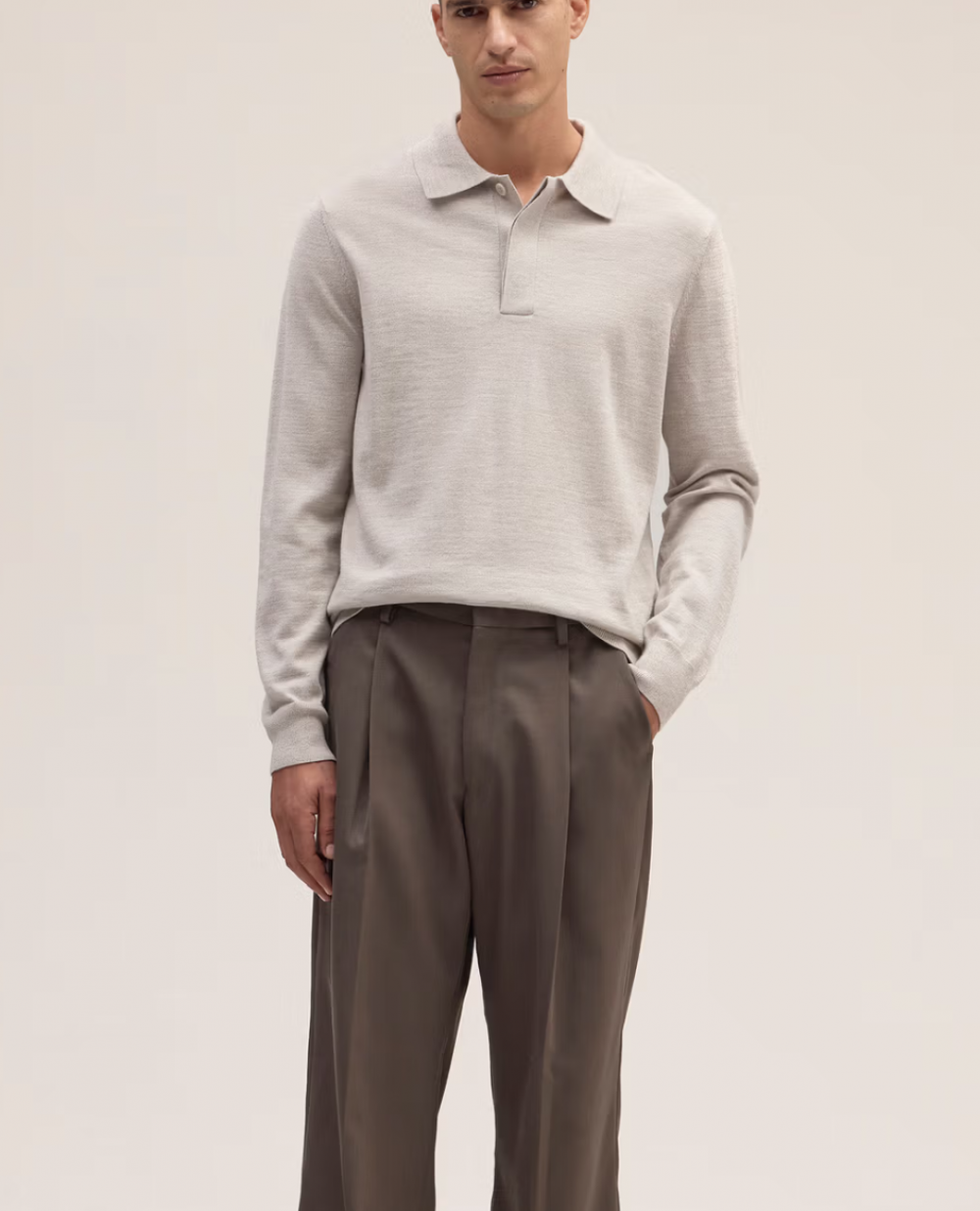 Ce pull polo est confectionné en fil de laine mouliné et tricoté en point de jersey, offrant douceur et légèreté. Il se distingue par une jolie côte le long de l’ourlet et des poignets, et se ferme élégamment grâce à des boutons dissimulés.