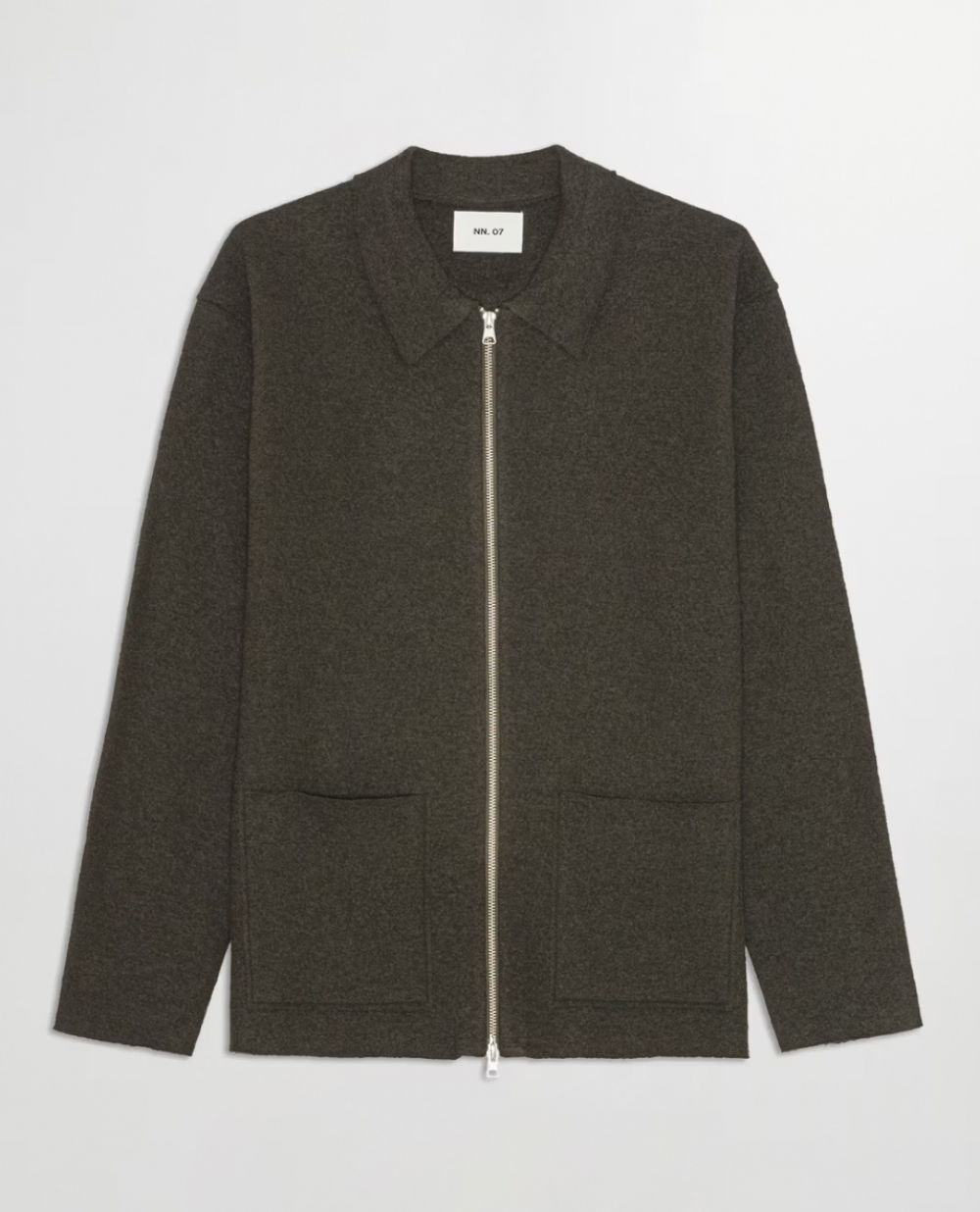 Cette veste hybride à la coupe classique est confectionnée en laine mérinos bouillie 100 %, offrant un toucher à la fois doux et texturé. Elle se distingue par ses finitions en laine bouillie à bords francs et sa fermeture éclair intégrale, rehaussée du logo signature pour une touche élégante et contemporaine.