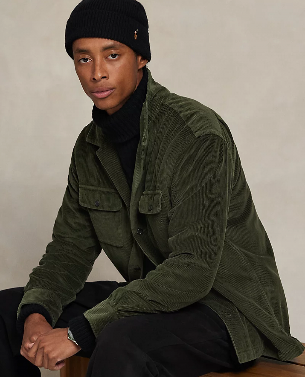 Cette surchemise à col safari revisite l’esthétique rustique dans une version raffinée. Confectionnée en velours à larges côtes, elle est doublée d’un sergé écossais, apportant confort et caractère. Une pièce chaleureuse et texturée, idéale pour la mi-saison.
