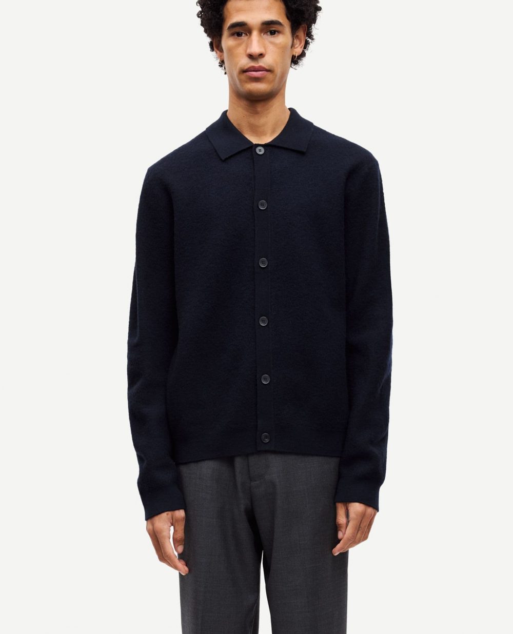 Ce cardigan à col, à la coupe classique, séduit par son élégance sobre et intemporelle. Il est doté d’une fermeture boutonnée sur le devant, de poignets et d’un ourlet en finition côtelée pour une tenue impeccable. Confectionné en 100 % laine mérinos certifiée RWS (Responsible Wool Standard) par Control Union (CU 1009799), il garantit une production respectueuse du bien-être animal et de l’environnement. Une pièce essentielle, à la fois confortable et engagée.