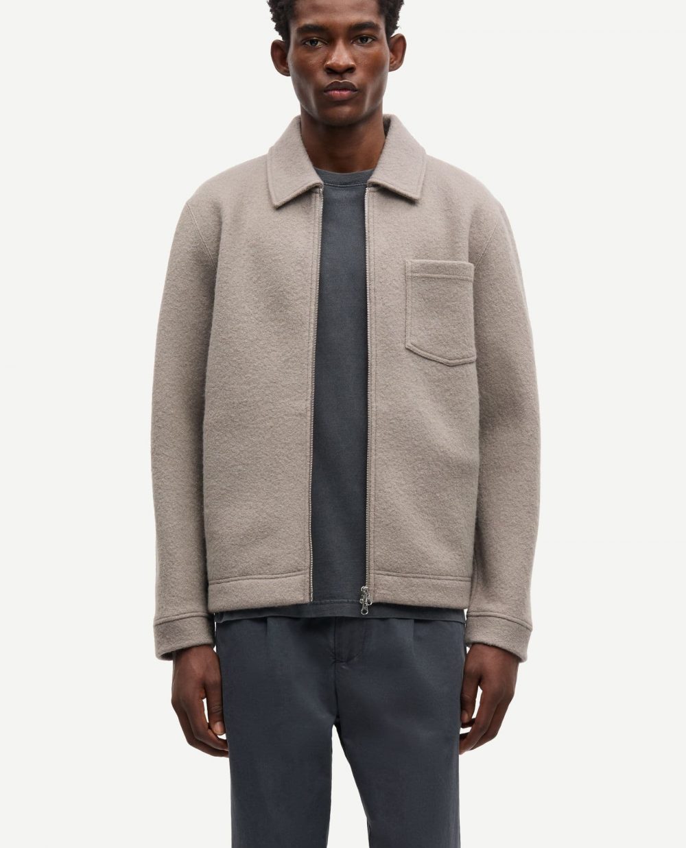 Ce cardigan à la coupe regular revisite l’esprit workwear avec élégance. Il se distingue par une fermeture zippée double sens, un col pointu structuré et une poche poitrine plaquée. Confectionné dans un tissu de sweat-shirt feutré 100 % laine, il associe confort et caractère. Ce modèle contient 52 % de laine recyclée certifiée GRS (Global Recycled Standard) par Control Union (CU 1009799), garantissant une fabrication respectueuse de l’environnement.