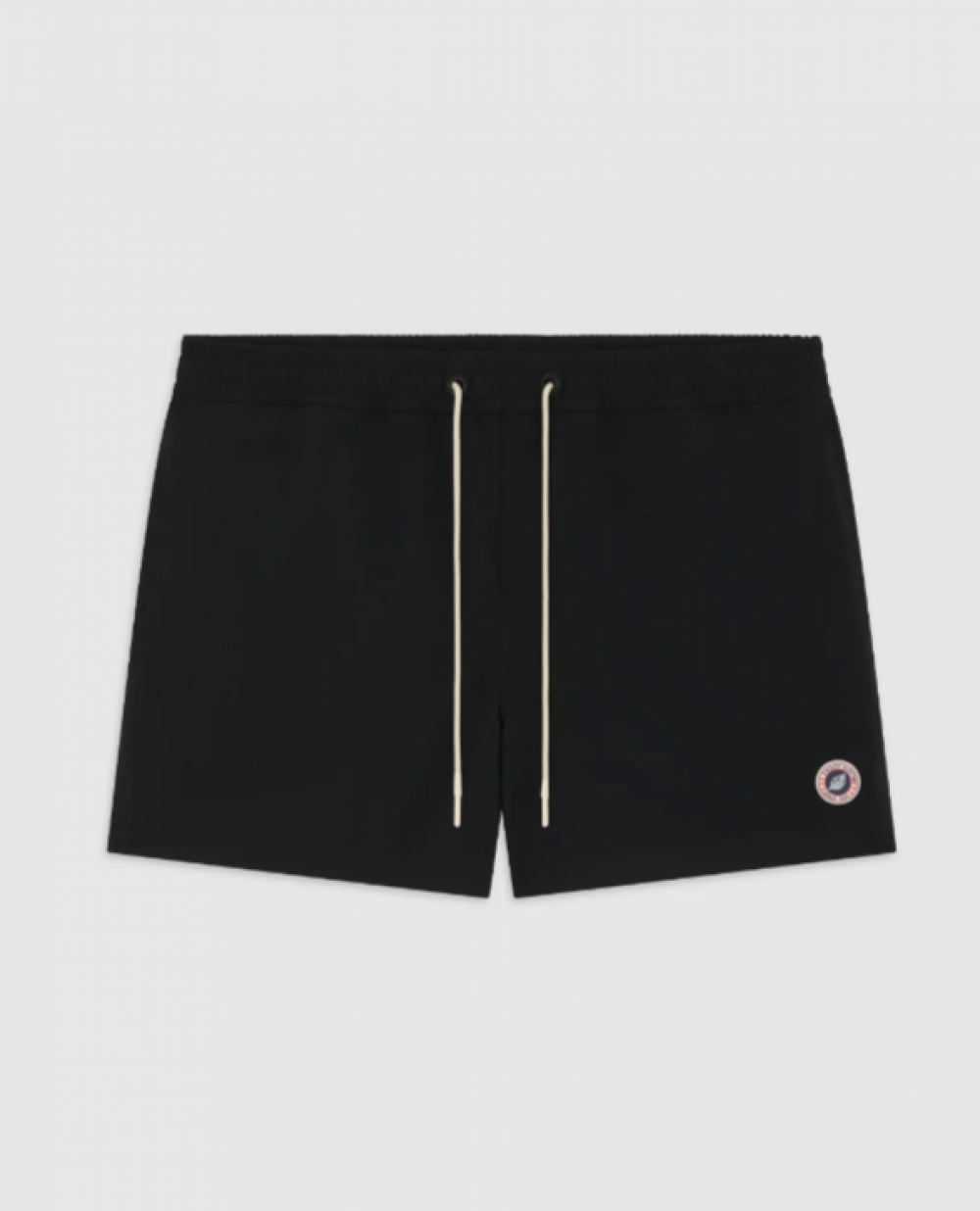 Ce short de bain Sweet Pants à la coupe ajustée, doté d’une ceinture élastiquée avec cordon de serrage rond écru et embouts en gomme. Il est équipé de poches sur les côtés ainsi que d’une poche dos plaquée avec rabat et pression gomme personnalisée Sweet Pants. Un œillet ton sur ton et un patch logo en gomme tricolore à l’avant viennent compléter le modèle, confectionné en 100 % Maldivas.
